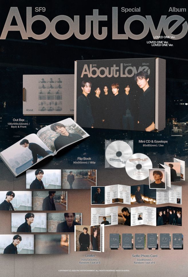 SF9 – Special Album [About Love] (LOVED ONE Ver.) е специален албум на популярната K-pop група SF9, който изследва темата за любовта чрез емоционална музика и стилна визуална концепция.